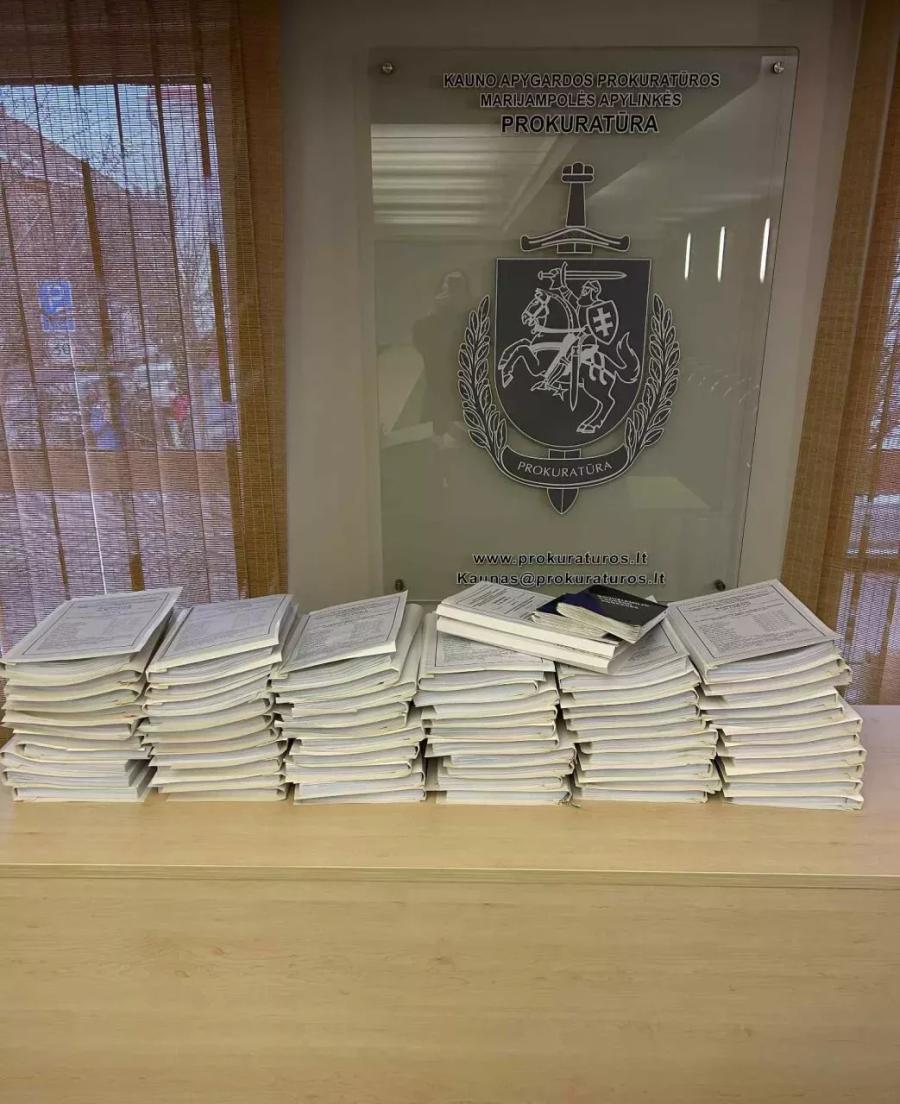 Marijampolės apylinkės prokuratūros prokurorė surašė kaltinamąjį aktą ir teismui perdavė baudžiamąją bylą, kurioje 10 asmenų kaltinami labai didelės vertės sukčiavimu, veikiant organizuotoje grupėje. Šioje baudžiamojoje byloje dar vienas asmuo kaltinamas nusikalstamu būdu gauto didelės vertės turto įgijimu arba realizavimu.